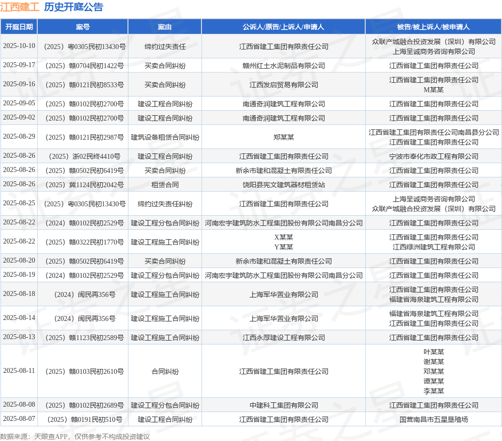 本站消息,根据天眼查APP显示,近日公布了一则江西省建工集团有限责任公司作为被告/被上诉人的开庭公告,详细内容如下: